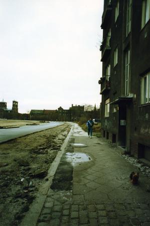Mauerbrache in Kreuzberger Wohngegend, im Hintergrund links die St.-Thomas-Kirche