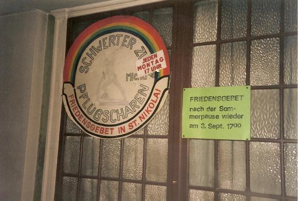 "Leipzig, DDR im Sommer 1990, auch die Friedensbeter sind im Urlaub"