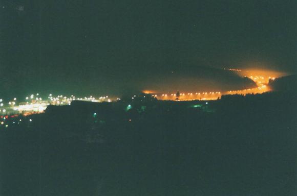 "The border points Rudolphstein (West -white light) and Hirschberg (East - yellow light) by night."