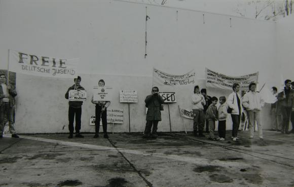 [K]eine Bekrenzung / [di]e SED hat verspielt / [j]etzt freie Wahlen