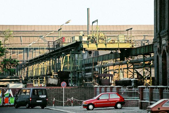 "1989 arbeiten in den 18 Betrieben des Schwermaschinenbaukombinat SKET etwa 30.000 Menschen. So wie im Betrieb 16, der Eisengießerei und Formdreherei zwischen Sandbreite und Karl-Schmidt-Straße. (aus: Stadt im Wandel. Magdeburg zwischen 1990 und 2006, in vergleichenden Fotografien von Werner Klapper, 2. Aufl., Magdeburg: Ost-Nordost Verlag 2007)