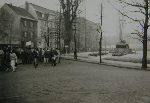 Demonstrationszug am "Panzerdenkmal" in Wittenberge