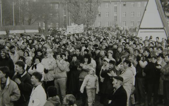 Applaudierende Demonstranten auf dem Platz der Freiheit