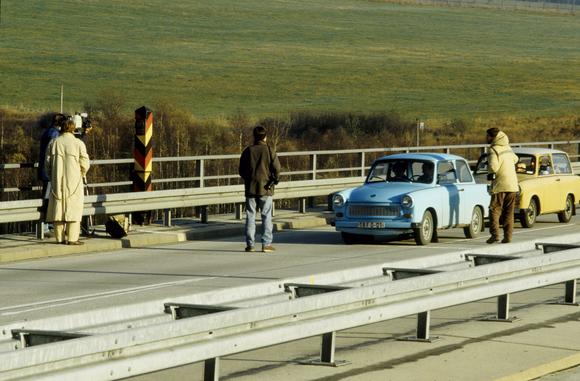 Journalisten und Trabifahrer auf der Saalebrücke Rudolphstein (