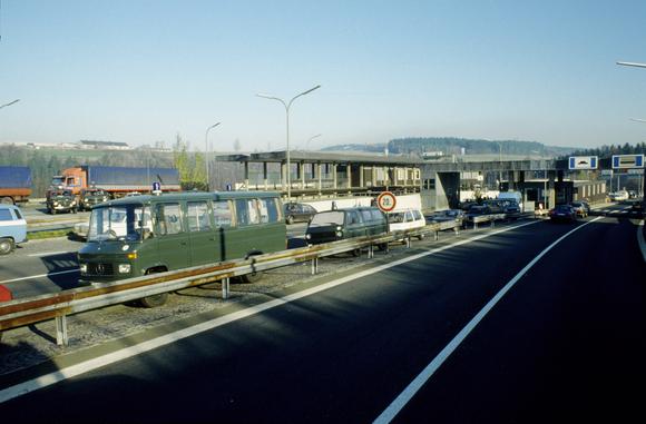 Am Autobahn-Grenzübergang Rudolphstein/Hirschberg auf der A 9, der am 9. November 1989 geöffnet wurde
