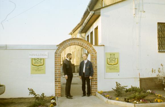 "Erste freie Wahl in Schönow, Wahllokal in Schmetzdorf (LPG) mit Herrn W. S. (Neues Forum) und Herrn M. L. am 18. März 1990"