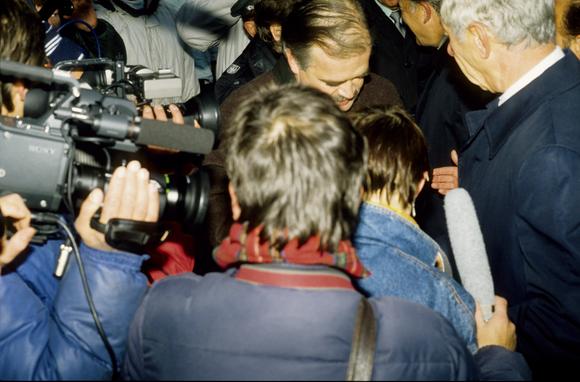 Dr. Jürgen Warnke, then federal minister for economic cooperation and development, Joachim André, the then vice-chairman of Karl-Marx-Stadt district council and Peter Gauweiler, then state secretary of the Bavarian state ministry of the interior open the border crossing on the A 722 (A 72) freeway