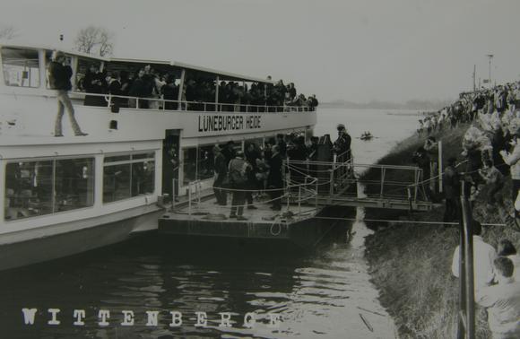 "25.12.1989 – 1. Weihnachtstag. Wittenberge in großer freudiger Erwartung! Ein Schiff soll kommen, und zwar die 'Lüneburger Heide' mit Bürgern aus den Elbe-Nachbarorten Schnackenburg, Gartow, Lüchow und Dannenberg. Das sind die nächsten Orte an der Elbegrenze, gegenüber von Lütkenwisch am hiesigen Elbufer." (Horst und Ralf Podiebrad: DDR/D Wittenberge. Band 3, S. 132)