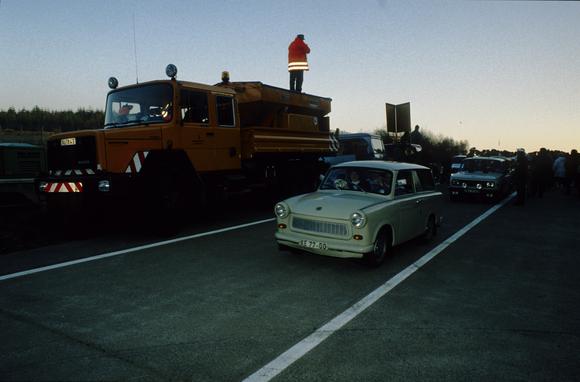 Der damalige Bundesminister für wirtschaftliche Zusammenarbeit und Entwicklung Dr. Jürgen Warnke, der damalige stellvertretende Vorsitzende des Bezirksrates Karl-Marx-Stadt Joachim André und der damalige Staatssekretär im Bayerischen Staatsministerium des Innern Dr. Peter Gauweiler eröffnen den Grenzübergang an der A 722