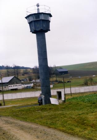 "Watchtower, the Wall in the background and West Mödlareuth."