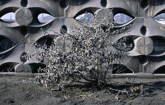 Staubbedeckter Strauch vor dem Kombinat VEB Chemische Werke Buna