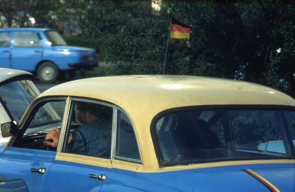 Wartburg mit Deutschlandfahne und Deutschland-Rallyestreifen