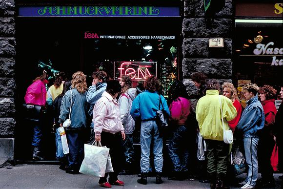 Warteschlange vor einem Schmuckladen