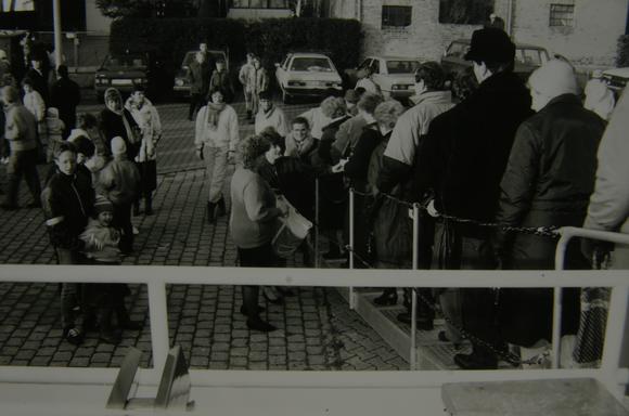 Begrüßungsgeschenk, Blasmusik, Boot, Bürgermeister, Feuerwehr, Hafen, Innerdeutsche Grenze, Menschenmenge, Weihnachten