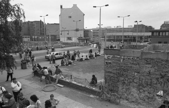 Friedrichstraße border crossing (Checkpoint Charlie), one of the seven road border crossings between East and West Berlin (Soviet and American sectors, respectively) during the time of the Berlin Wall. Checkpoint Charlie was designated for use by foreign nationals, affiliates of the Allied Forces and diplomats.