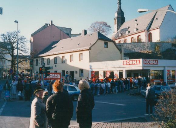 Queue outside a supermarket