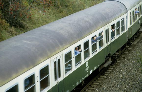 Thousands of East German refugees travelled with special East German Railway trains, arriving in the West German town of Hof in October 1989. After fleeing to the German Embassy in Prague, many of the people had been there since August until finally granted permission to leave the country on 30 September.