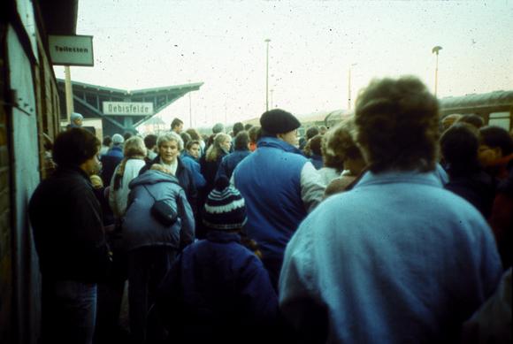 "Schlange bzw. Massen vor dem Westbahnhof in Oebisfelde"