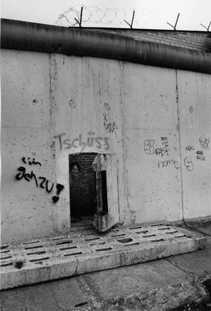 A door in the Wall, photographed from the East. "According to historians, the Wall around Berlin had only six or eight segments such as this one, with a small vaultlike door." (Retrieved and translated from Winfried Wagner: "Wer kauft DDR-Mauerteile mit Tür?", mz-web, 17.09.08, on April 23, 2009)