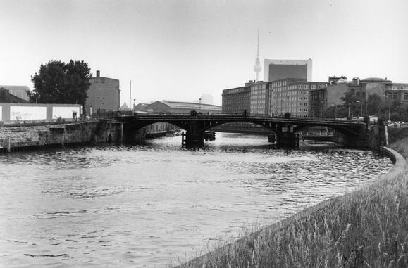 Former border strip along Reichstagufer; a view of Schiffbauerdamm and Marschall Bridge
