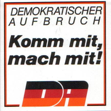 "Der Demokratische Aufbruch" (DA) gehörte zu den von der BDE unterstützten Organisationen. Ihm und dem Neuen Forum wurden jede Menge Materialien geliefert - bis hin zu kompletten Druckmaschinen."