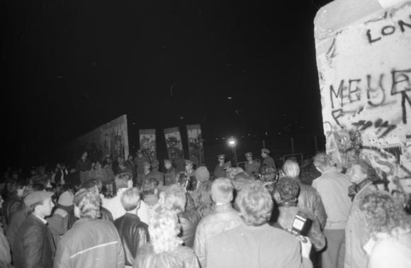 Menschenmenge auf der Westseite der Berliner Mauer bei der Öffnung des neuen Grenzübergangs Potsdamer Platz am 12. November 1989