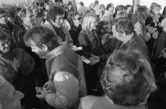 Crowds of people gathered at the border opening at Potsdamer Platz on November 12, 1989