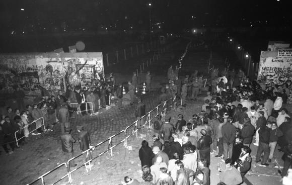 Menschenmenge auf der Westseite der Berliner Mauer bei der Öffnung des neuen Grenzübergangs Potsdamer Platz am 12. November 1989