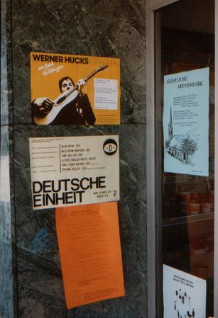 Poster advertisement for "Bürgerinitiative Deutsche Einheit" (BDE) ("Citizens' Initiative for German Unity") an initiative that emerged from the "International Society for Human Rights" (ISHR) which counted many GDR migrants among its members. The BDE was founded in Schleswig in January 1990 in order to support the opposition in the GDR on its path to reunification.