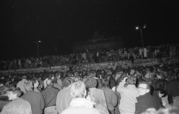 "Crowd of people in front of Brandenburg Gate (West side). Towards evening it became increasingly crowded."