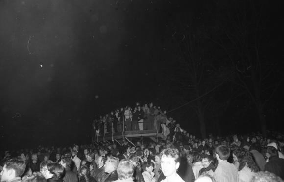 Menschenmenge auf der Westseite der Berliner Mauer am Brandenburger Tor