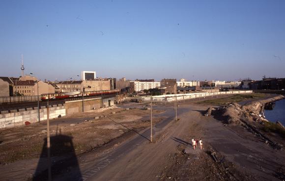 "Blick von einem völlig demolierten Wachtturm am Schiffbauer Damm auf das Internationale Handelszentrum."