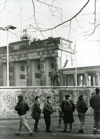 Passanten vor der Westseite der Berliner Mauer am Brandenburger Tor