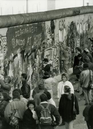 Pedestrians and Mauerspechte (Berlin Wall "woodpeckers") at the West side of the Berlin Wall