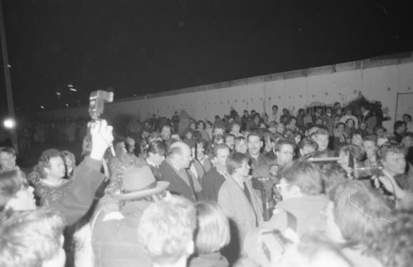 Der damalige Regierende Bürgermeister von Berlin Walter Momper umringt von einer Menschenmenge am Brandenburger Tor