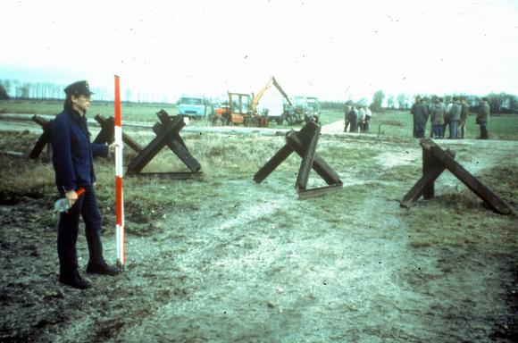 Bauarbeiten zur Öffnung des Grenzübergangs zwischen dem sachsen-anhaltischen Breitenrode und Grafhorst, einem Ortsteil der Stadt Velpke in Niedersachsen, die am 23. Dezember 1989 stattfand