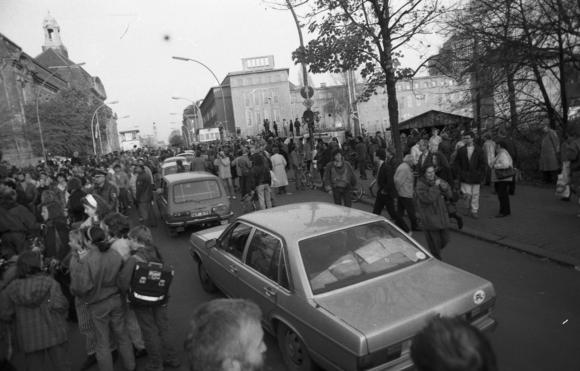 Menschenmenge in der Invalidenstraße auf Westberliner Seite