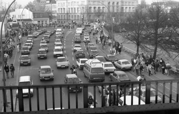 View from Lehrter Bahnhof bridge on Invalidenstraße