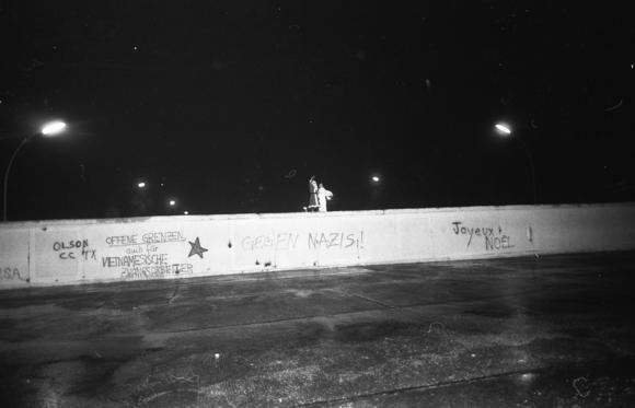 "An angel and - of course Father Christmas - dance on the Wall at Brandenburg Gate on 24 December 1989."