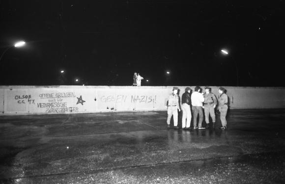 "Ein Engel und - natürlich der Weihnachtsmann - tanzten am 24. Dezember 1989 auf der Mauer am Brandenburger Tor. Die DDR-Grenzer fanden das nicht wirklich gut und entfernten zwangsweise Fans von dem ungewöhnlichen Duo."
