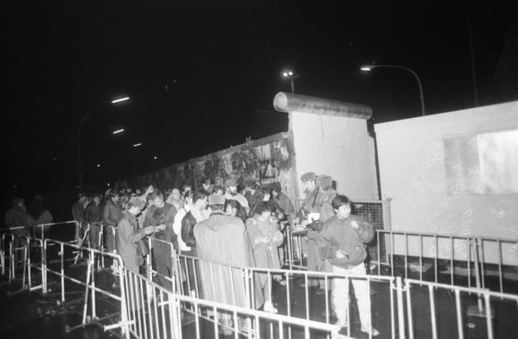 Crowd of people at Potsdamer Platz, which served as a new border crossing as of 12 November 1989
