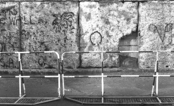 barrier grid, Berlin Wall (West), chisel traces, Wall graffiti, Wall hole