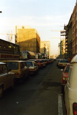 Verkehrsstau in der Nähe des Checkpoint Charlie