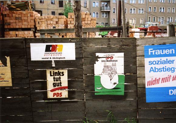 Wahlplakate für die erste freie Volkskammerwahl in Dresden