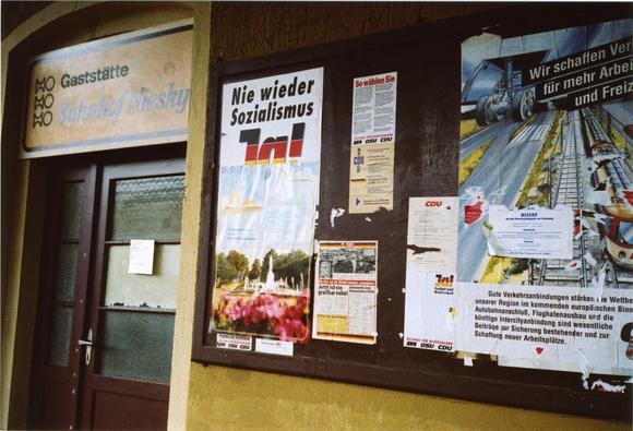 Wir schaffen Ver[...] / für mehr Arbei[t] / und Freiz[eit] / Gute Verkehrsanbindungen stärken [...] / unserer Region im kommenden europäisc[hen] [...] / Autobahnanschluß, Flughafenausbau und / künftige Intercityanbindung sind wesentli[che] / Beiträge zur Sicherung bestehender und z[ur] / Schaffung neuer Arbeitsplätze.