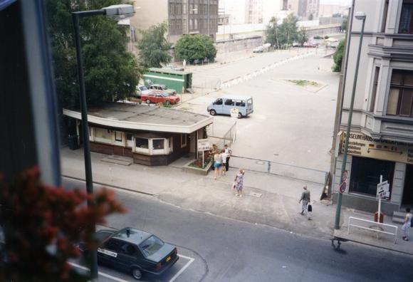 Blick aus der neuen Wohnung auf den Checkpoint Charlie