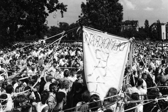 Kirchentag in Leipzig, 9. Juli 1989: Demonstration gegen Wahlbetrug und für Demokratie während des Leipziger Kirchentags [21/41]