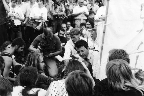 Nach dem Abschlussgottesdienst auf der Leipziger Rennbahn formierte sich eine Demonstration gegen Wahlbetrug und für Demokratie. Die Sicherheitskräfte griffen wegen der anwesenden westlichen Journalisten und Gäste nicht ein. […] In der Peterskirche fand die Aktion mit einer improvisierten Andacht ihren Abschluss." (