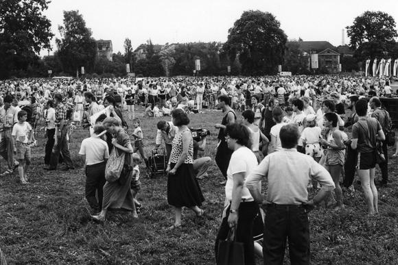"Vom 6. bis 9. Juli fand in Leipzig der Kirchentag der sächsischen Landeskirche statt. Auf staatlichen Druck hin verzichteten die Veranstalter bewusst auf politische Themen.