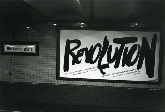 Plakat "Revolution" im U-Bahnhof Alexanderplatz